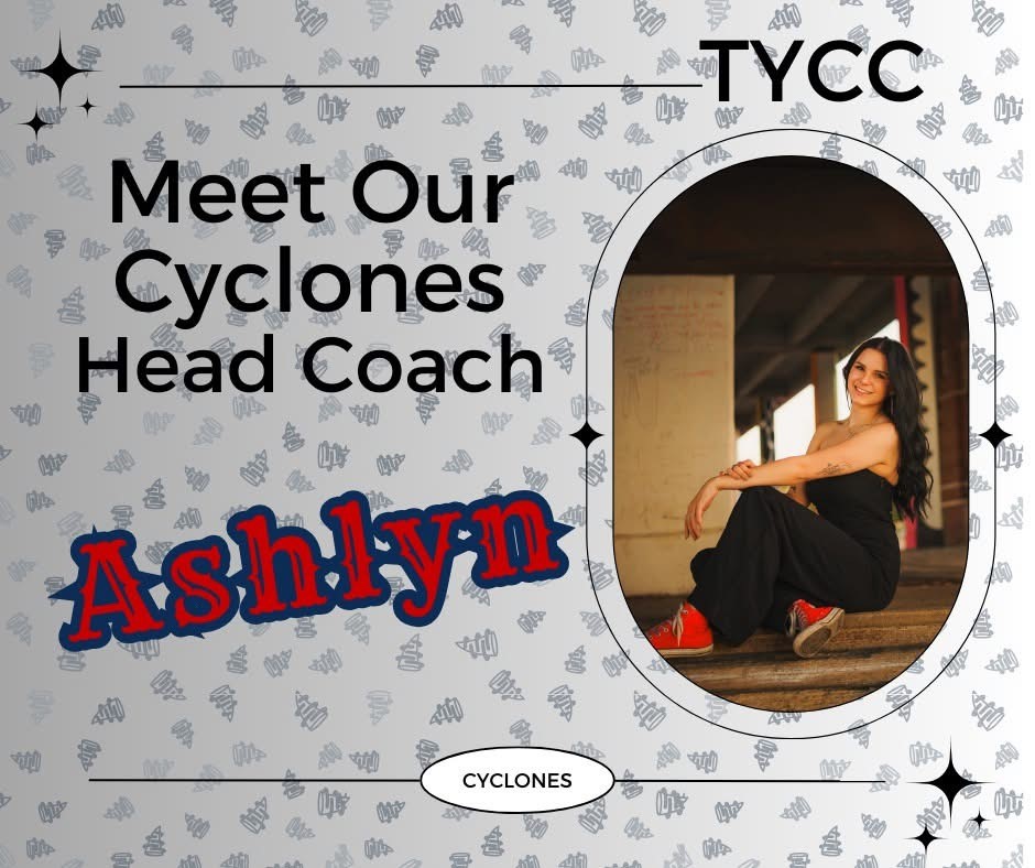 Coach Ashlyn is the head coach for our Cyclones and she’s ready to lead these teams to new heights! 🚀 This is her second year coaching for TYCC, and last year she helped Wildfire bring home 3 bids for state! 🏆 With a passion for cheer and years of experience cheering from 3rd grade through high school, Coach Ashlyn knows what it takes to succeed both on and off the mat.
