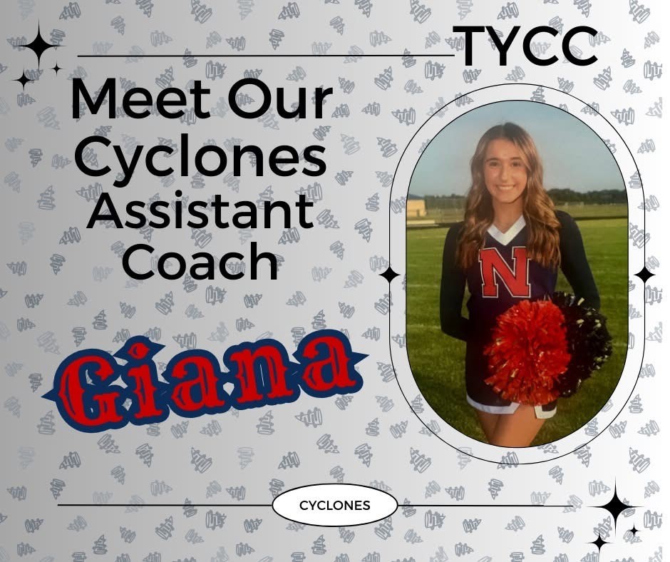Coach Giana is the assistant coach for Cyclones and has been cheering since she was just 3 years old! Her passion for the sport has only grown over the years, and she’s now passing that passion on as a coach. Last season, she helped lead the Cyclones to a first-place finish at state—a huge achievement! 🏆